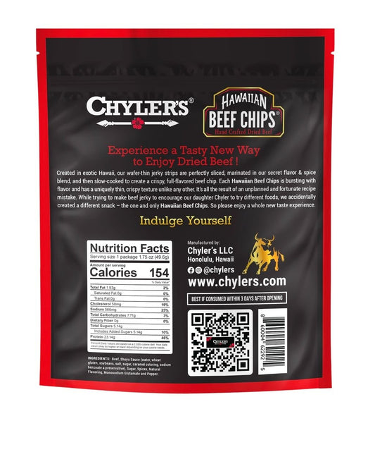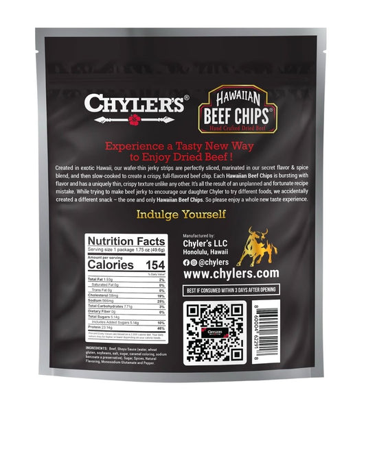 The unique texture had our family saying, "It's not jerky, it's like a chip!". So we adopted the recipe and added “Hawaiian” to honor where it was created and came up with Hawaiian Beef Chips.